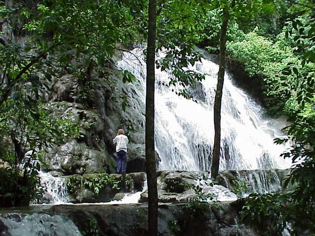 The waterfalls along the Rio Otolum between the ball court and the museum. 2000
